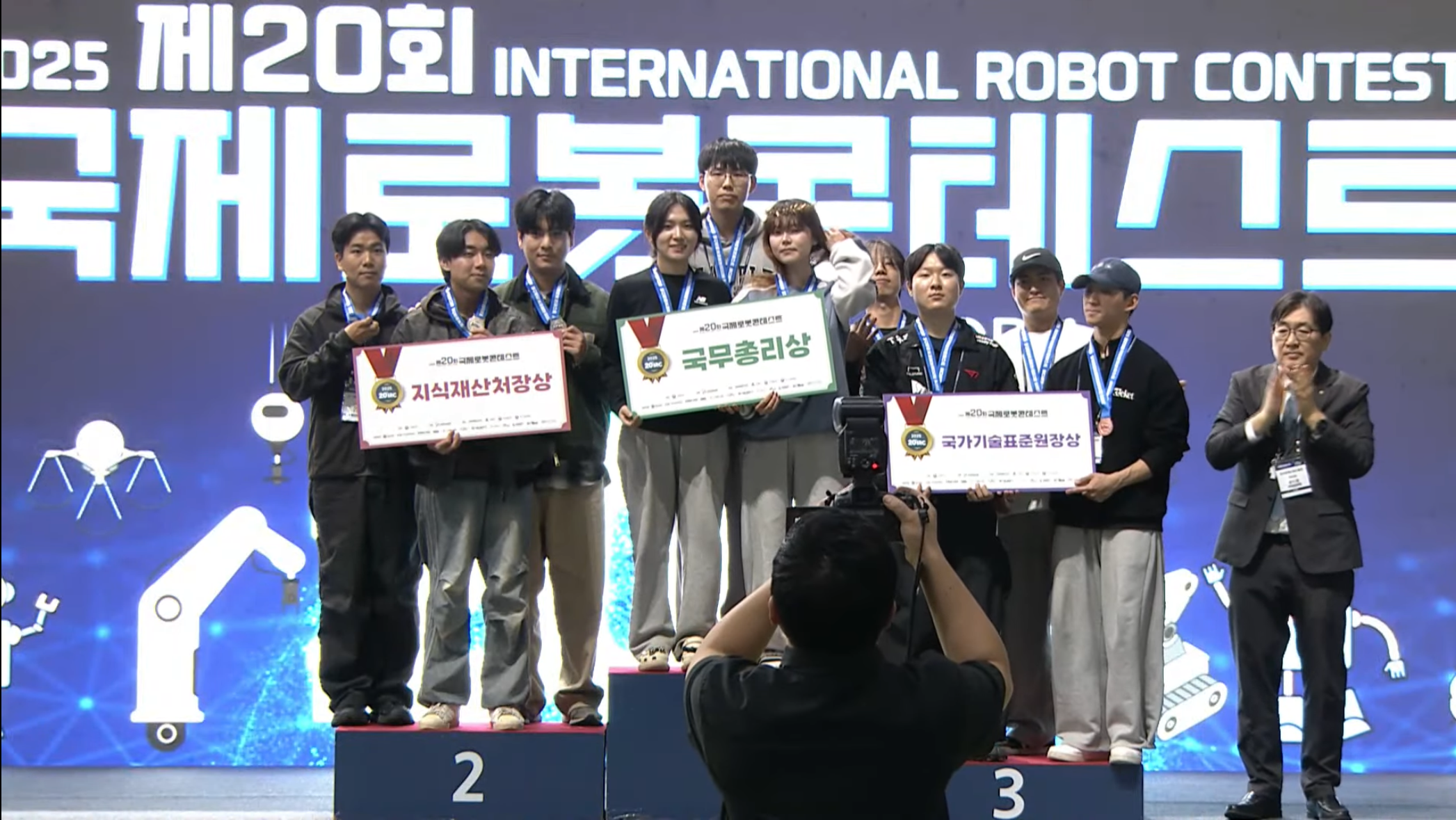 우리 대학 재학생으로 구성된 '스드아이'팀(AI자율주행시스템공학과 신봉진(22학번), 스마트드론 22학번 양서빈, 임서현, 허예진)이 「2025 국제로봇콘테스트(IRC) 국제로봇올림피아드 AI 자율주행 경진대회」에서 AI 자율주행 ASW(AI Software) 부문 국무총리상(1등상)을 수상하는 쾌거를 거두었다.