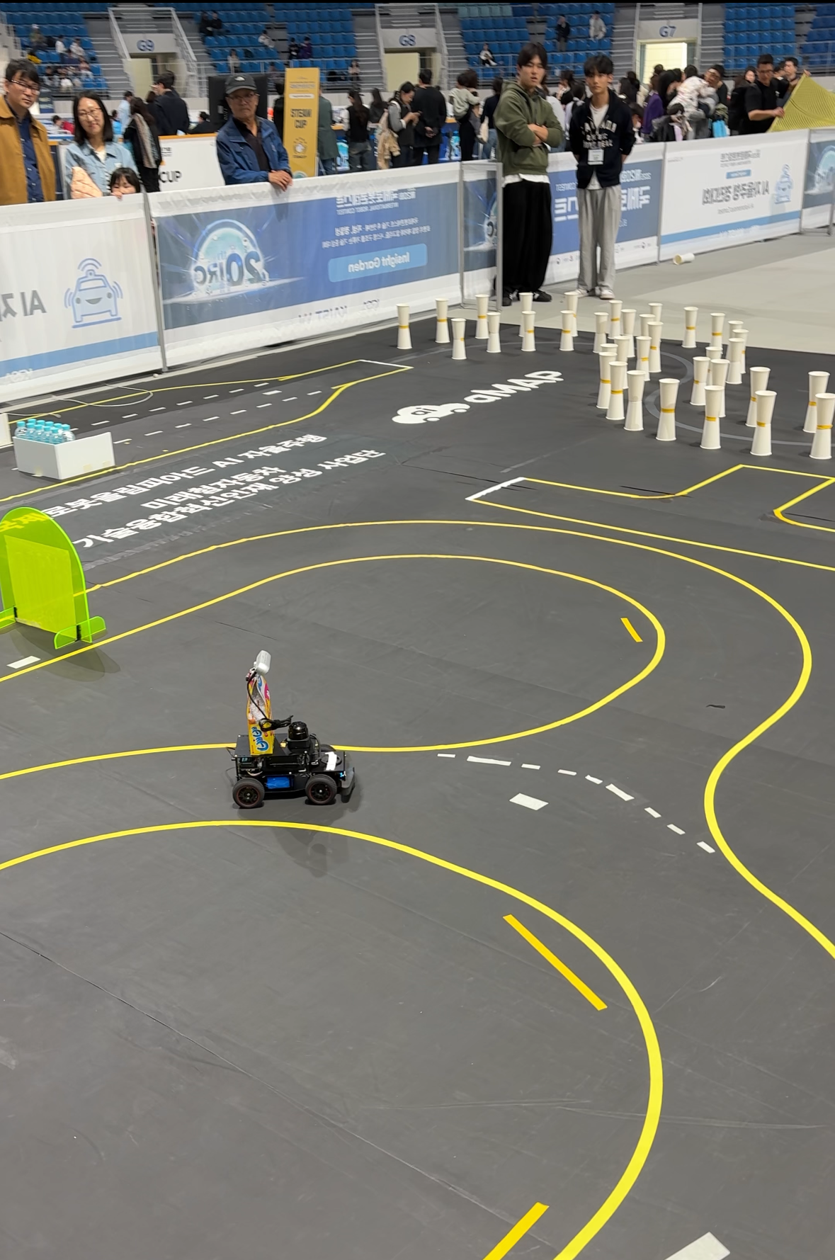 AI 자율주행 ASW(AI Software) 부문은 1/10 크기의 자율주행 로봇 차량을 활용해 실제 도로 환경을 모사한 트랙에서 자율주행 성능을 겨루는 종목이다. 해당 트랙은 주변 환경 인식 능력과 ROS 기반 자율주행 제어 기술을 요구하는 고난도 코스로 구성되어 있으며, 참가 팀들은 카메라 및 각종 센서를 활용해 차선, 곡선 구간, 교차로, 장애물 등을 인식하고 이를 바탕으로 경로 계획 및 속도 제어 알고리즘을 구현해야 한다. 이를 통해 참가자들의 인공지능 소프트웨어 역량과 시스템 통합 능력이 종합적으로 평가된다.