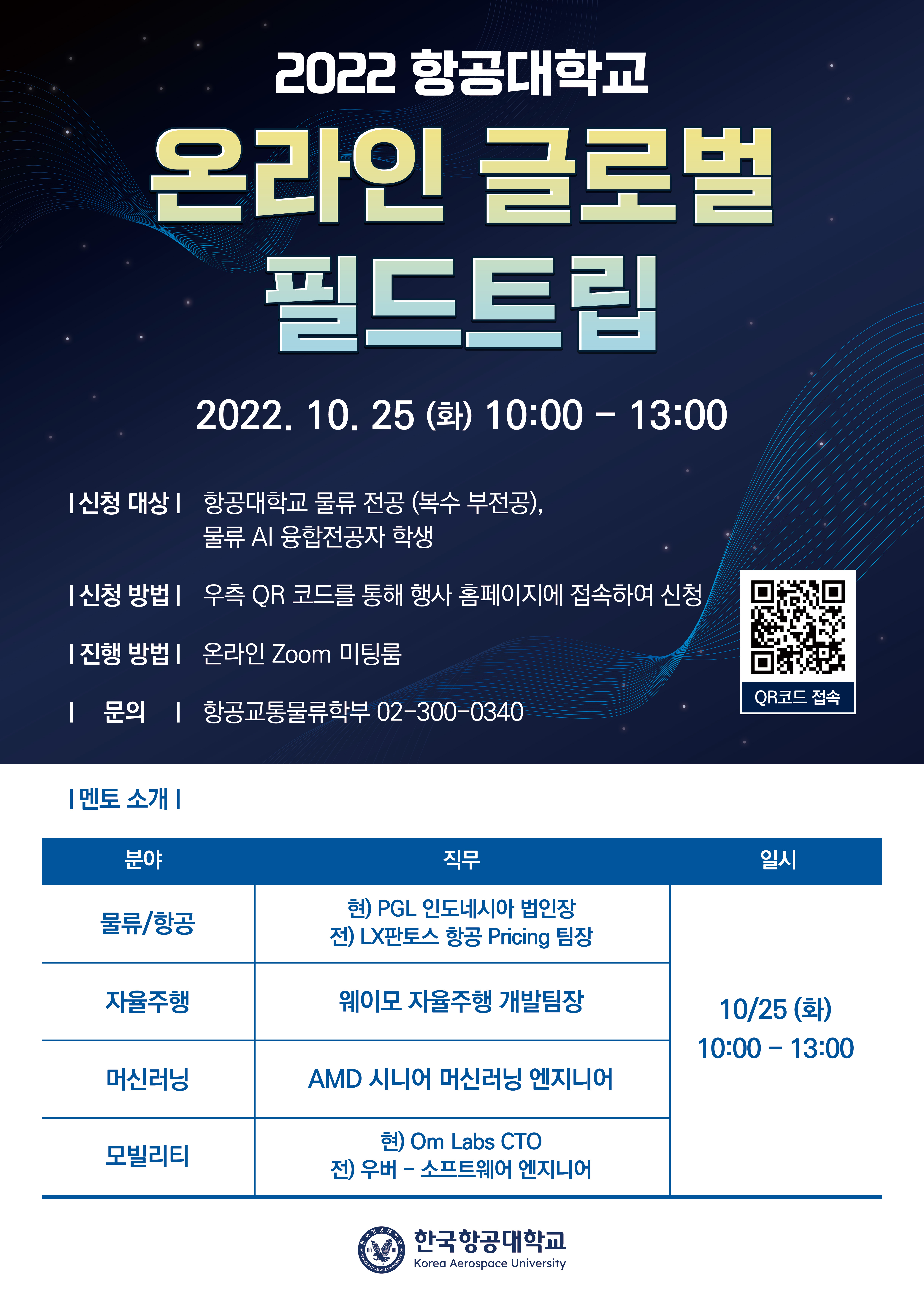 '항공교통물류학부'에서 해외 물류 및 A I 관련하여 온라인 세미나를 진행하오니 관심있는 학생들은 참여 바랍니다.